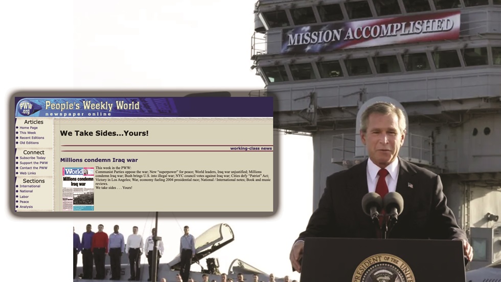 The statement below, issued by the Communist Party USA on the day of the invasion, condemns the war and sounds an alarm about the dangers ahead and the tasks of the peace movement. The CPUSA also predicted that the war would, in contradiction to Bush’s hopes, actually speed up the crisis of U.S. imperialism and propel the development of a multipolar world. It was printed in People’s Weekly World on March 22, 2003.