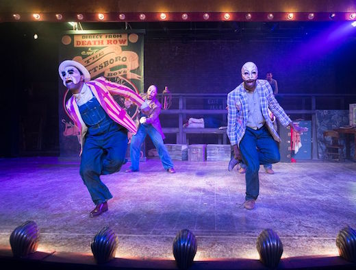 Chicago’s Raven Theatre‘s current but soon-to-be-gone political musical production Direct from Death Row The Scottsboro Boys (An Evening of Vaudeville and Sorrow), directed by Michael Menendian, written by Mark Stein with music and lyrics by Harley White Jr., is a must-see show that underscores this theme, powerfully dramatizing in historical perspective-in social, political, and cultural terms-the recursive violence and deadly threat African Americans endure both as a matter of everyday living in the United States and at the hands of a racist U.S. justice system.