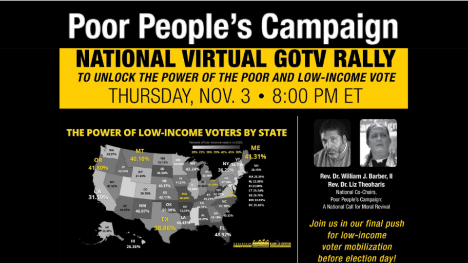 JACKSON, Miss.—The Poor People’s Campaign has exceeded its national goal of reaching five million low-income and low-propensity voters, co-chairs the Revs. William Barber II and Liz Theoharis announced on Oct. 30. And it isn’t going to stop there.