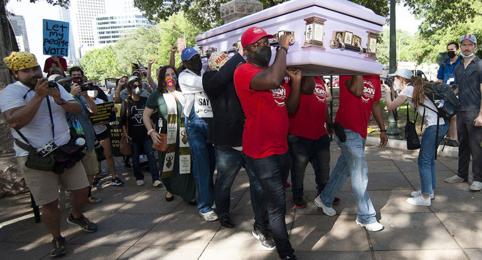Speakers said people nationwide must stand up and march because without curbing the baleful influence of corporate interests, big money, and their right-wing allies, democracy is in danger. That influence even appeared in the first coronavirus aid law, approved during the reign of former GOP Oval Office occupant Donald Trump.