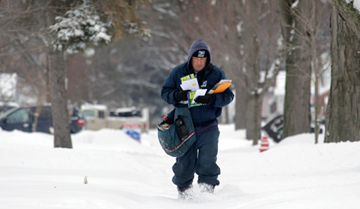 Photo: Letter carrier walks through fresh snow delivering mail in Berea, Ohio. Mark Duncan/AP