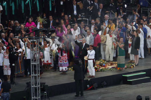 One of the signature features of AMLO’s campaign is that he visited every state in the country (perhaps he took an object lesson from Hillary Clinton!), but not just for rallies in the capital cities. He went to small towns and villages, introducing himself as someone concerned with everyday people’s problems, especially in the rural sector, which no candidate had ever done before. The “people’s inauguration” before a crowd of at least 50,000 in the Zócalo was therefore not just the culmination of this approach but in many people’s minds—those not able to attend the formalities in the Chamber of Deputies—the truer transfer of authority. No previous presidential inauguration had ever highlighted Indigenous culture, religion and participation. Effectively, for most of recent Mexican history, Indigenous peoples had been largely ignored.