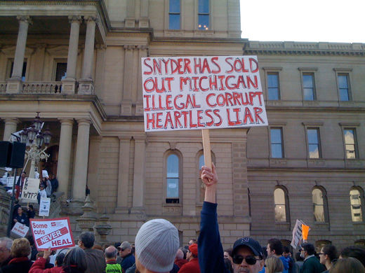 Photo: Michigan residents protest anti-union policies of the state’s Republican Governor Rick Snyder. (by Rickroll’d/cc by 2.0/Flickr)