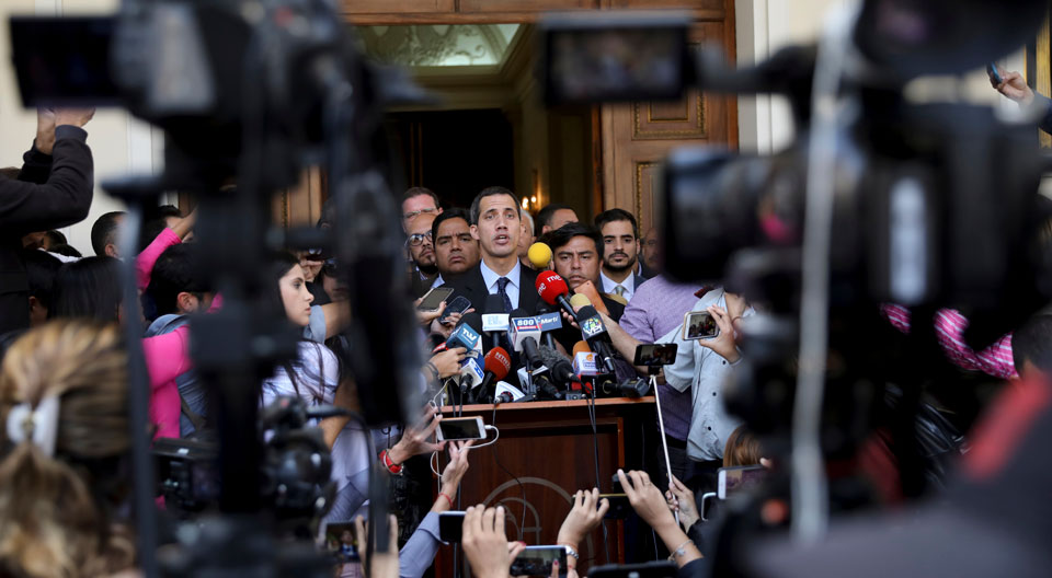 To compound the journalistic felony, the Times ran a Reuters wire photo showing Guaidó speaking to a street full of supporters, purportedly taken that day, but clearly not depicting where he had made his call for a coup, when he had only the camera to address, though incautious readers might well have assumed that is what the photo showed.