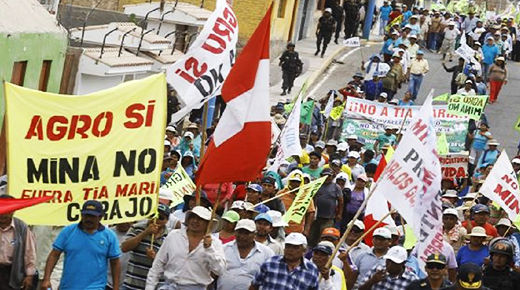 Unionists, rural workers, popular movements, and environmentalists are coming together in this region of southern Peru to halt the proposed Tia Maria copper mine. The mine project belongs to Southern Copper Corporation, a subsidiary of Grupo Mexico.