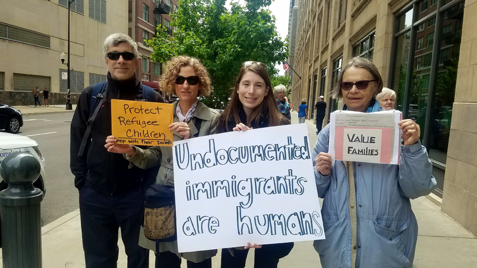 “This is abusive of children,” declared Allan Lindrup, a retired worker for the Social Security Administration who lives on the city’s South Side. “This goes against everything our government stands for and against everything that all the religions stand for.” Lindrup said he hoped the pressure of the 2018 midterm elections would move those in Congress who have yet to speak out against the forced separations. “As the outrage grows we have to let them know that if they don’t speak out they can lose their positions.”