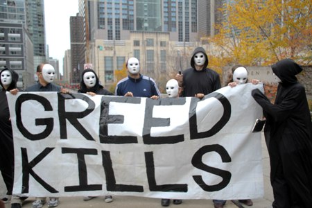 CHICAGO — Chanting “ABA you’re the worst, time to put the people first,” over 1,000 people confronted the officers of some of America’s biggest banks today, Oct. 26, on the second of three days of protest during an ABA (American Bankers Association) conference. Tomorrow on the third day thousands more, including AFL-CIO president Richard Trumka and Change to Win president Anna Burger, will demonstrate in the name of taxpayers, retirees, family farmers, clergy, workers, students, homeowners, and community allies.
