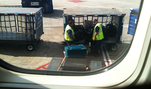 Photo: Baggage handlers at SEATAC. | Michael Cote/Flickr via PBS.org
