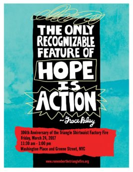 Each year, we gather to remember the 146 workers who lost their lives in the tragic blaze, and to recommit to fighting for workers’ rights. This year’s program will also highlight two industries where worker abuses are rampant: Farm work and construction.