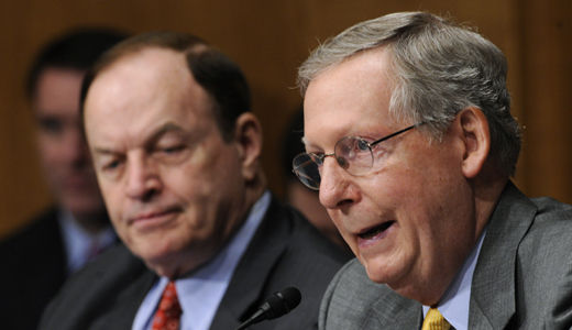 Photo: Sen. Richard Shelby, R-Ala., left, and Senate Minority Leader Mitch McConnell, R-Ky. Republicans threaten to filibuster against the finance reform bill to carve out a better deal for Wall Street. Susan Walsh/AP