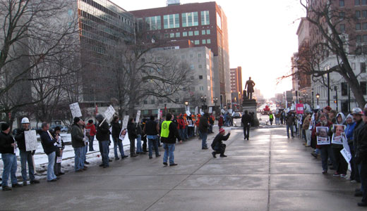 Sondra Simmons of United Auto Workers Local 602 said, “We’re not happy with what happened during the lame duck session and we’re not going away. Every time they meet we’ll be here.” She said she would be alerting her membership to the importance of the 2014 elections. “If they didn’t realize before how important it was to vote, they know now.”