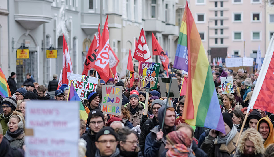 Indeed, while anti- Jewish prejudice was also growing, the most menacing bigotry was clearly “Islamophobia.” But while eloquent politicians now denounce far-right parades, movements or parties – PEGIDA, NPD, Identitarians and, in recent years the biggest and strongest, the AfD, while they call for tolerance and togetherness, they are very hesitant about turning for solutions from psychiatrists to anti-fascists.