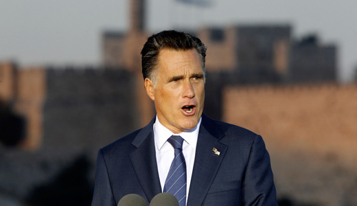 Photo: Republican presidential Mitt Romney delivers a speech in Jerusalem, July 29. Charles Dharapak/AP