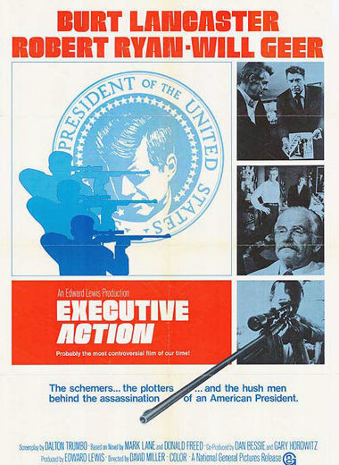 Ten years after Kennedy’s killing the trailer for Executive Action proclaimed the movie to be “possibly the most controversial motion picture of our time.” Indeed, Burt Lancaster and Robert Ryan lead a group of conspirators in this covert action feature that boldly contradicts the Warren Commission’s finding that Lee Harvey Oswald acted alone. The 1973 movie raises the specter of two “Oswalds,” anti-Castro Cubans and ex-CIA agents as part of a shadowy conspiracy to whack the liberal leaning chief executive. Executive Action is also noteworthy for its left-leaning pedigree: It was co-written by ex-Communist Party member Dalton Trumbo, who’d been one of the blacklisted Hollywood Ten, and co-produced by Dan Bessie, whose father, Spanish Civil War veteran Alvah Bessie, had also been a member of the Ten. The co-writers included attorney Mark Lane, one of the original independent investigators of the Kennedy assassination, and progressive playwright Donald Freed (who co-wrote the 1984 Nixon movie Secret Honor, directed by Robert Altman). Executive Action was produced by Edward Lewis, who was also a producer for 1960’s Spartacus and for Costa-Gavras films, including 1982’s Missing. Blacklisted actor Will Geer (1954’s Salt of the Earth) co-starred as one of Executive’s right-wing co-conspirators. According to Freed, seed money was provided by antiwar activists for the low budget movie, shot for $175,000, which – despite the fact that TV networks refused to advertise it – eventually earned millions.