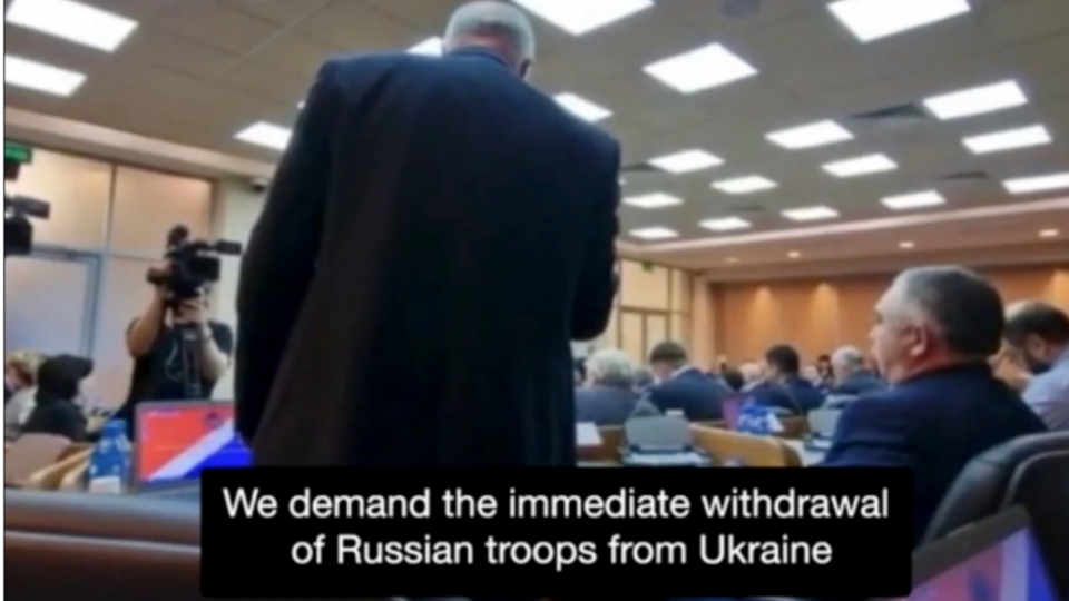 Vasyukevich concluded his anti-war speech by declaring: “We demand the immediate withdrawal of the Russian forces from Ukraine.”