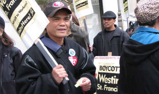 The latest in the series – a “two-day siege” March 31-April 1 at one of those hotels, the Westin-St. Francis in the heart of downtown – brought a noisy, enthusiastic picket line to the hotel’s front door.