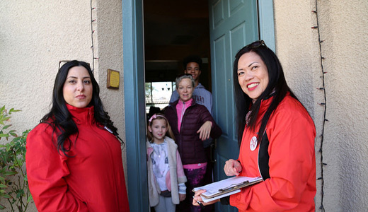Photo: Members of National Nurses United canvass for Bernie Sanders, the candidate supported by their union. There have been so many foreclosures of homes in Nevada that canvassers say they are having trouble finding voters listed at many addresses. | National Nurses United