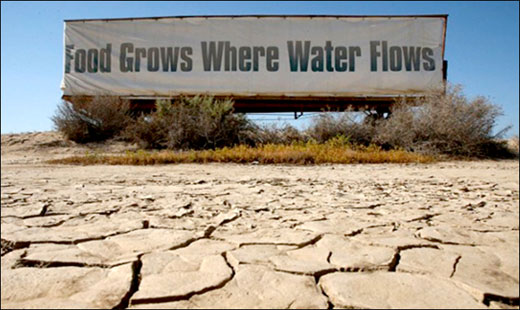 Photo: A sign above a dried-up riverbed in California’s Central Valley, which is prime agricultural land. Courtesy of EcoWatch and Center for American Progress.