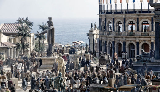 Photo: Scene at the agora, or marketplace, of 4th century Alexandria, as depicted in the film “Agora.” (www.agorathemovie.com)