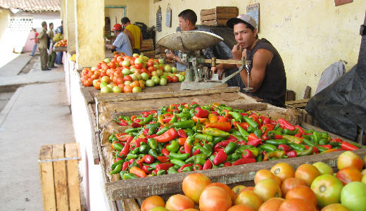 Photo: Cuban markets offer locally grown, organic produce, but the island depends on imports for most of its grains and dairy products. (PW/Roberta Wood)