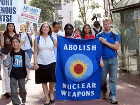 As the U.S. leads the world into a new 21st-century arms race, “Bechtel will be in the middle of it all, from the Los Alamos laboratory in New Mexico, where nuclear weapons are designed, to the Kwajalein test site in the Pacific, where U.S. strategic missile tests splash down,” Andrew Lichterman told the rally.
