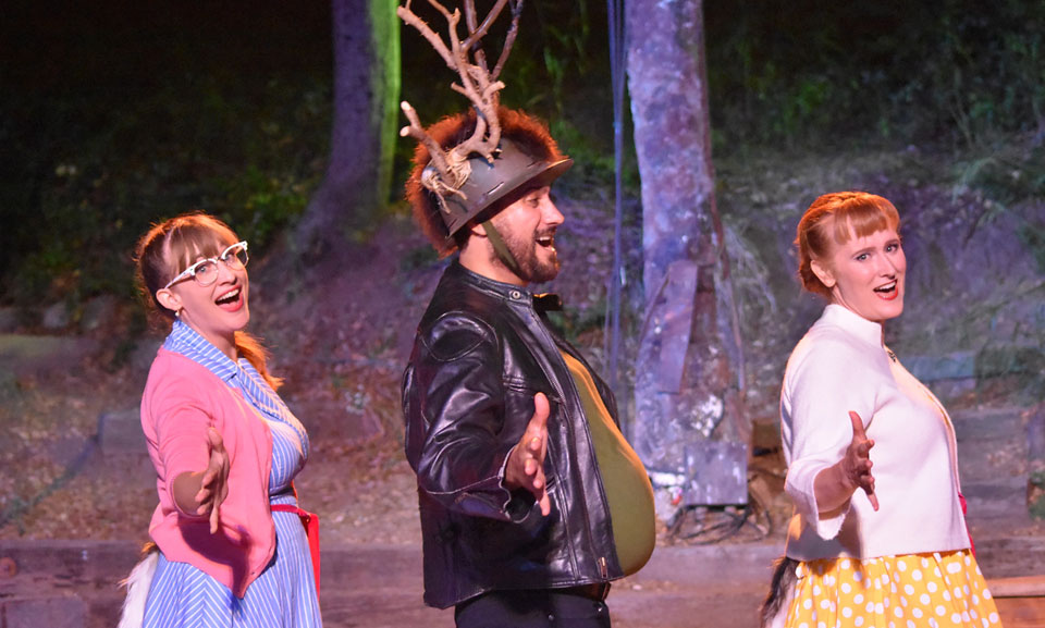 However, this version is the Bard with literally a “twist.” WGTB Artistic Director Ellen Geer has transported the Elizabethan-era Windsor, England, play to Windsor, Connecticut, during the 1950s (yes, there is such a town). A score of appropriate period music has been interjected into the madcap merriment of this modern dress revival, with songs from musicals such as My Fair Lady, South Pacific, and Bye Bye Birdie, plus rock ’n’ roll hits such as “Rock Around the Clock.”
