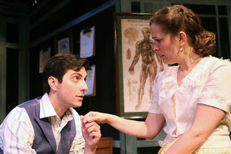 Alma, as Smoke clumsily reminds us more than once, means “soul” in Spanish, and this play, as Dr. John Buchanan (Gregory James) stresses, is about that anatomy chart, versus the more ethereal self. John and Alma grew up next door to one another, yet their longings for each other are never realized – their yearnings are never in physical and spiritual synch. Several times during the play I felt like shouting out, “Will you two make love already?!” If Streetcar ends with Blanche famously saying, “I have always depended upon the kindness of strangers,” Smoke‘s coda could be about “the blindness of neighbors.”