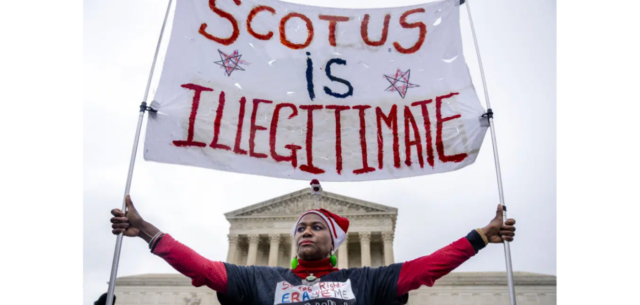 “SCOTUS is illegitimate,” it read in capital letters. “Illegitimate” was in red.