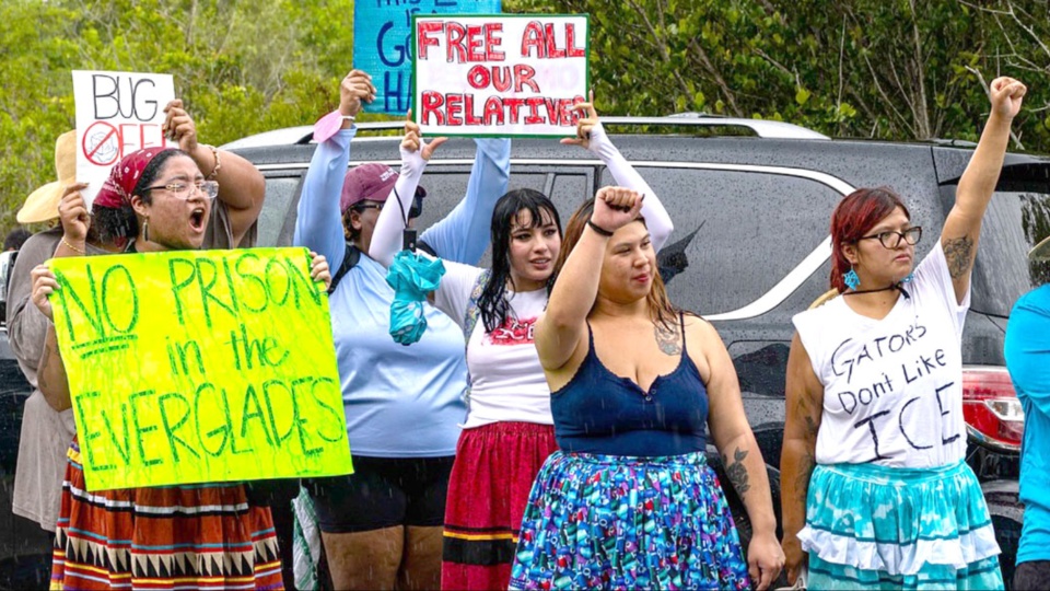 Call and write or visit your U.S. Representative and Senators to demand that Congress immediately defund and close the inhumane and life-threatening detention center imprisoning 1,000 immigrants of color in Florida under torturous conditions, horrifyingly called “Alligator Alcatraz.”