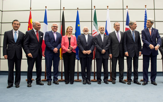 Photo: The agreement with Iran involves not just the United States, but Europe, Russia and China. From left to right: Chinese Foreign Minister Wang Yi, French Foreign Minister Laurent Fabius, German Foreign Minister Frank-Walter Steinmeier, European Union High Representative Federica Mogherini, Iranian Foreign Minister Mohammad Javad Zarif, Head of the Iranian Atomic Energy Organization Ali Akbar Salehi, Russian Foreign Minister Sergey Lavrov, British Foreign Secretary Philip Hammond and US Secretary of State John Kerry, at the United Nations building in Vienna, Austria, July 14, 2015, during their talks on the Iranian nuclear program. | Joe Klamar/pool photo via AP