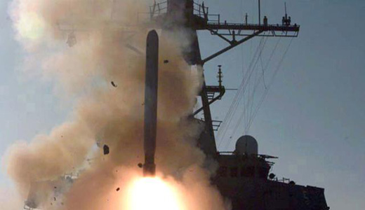 Photo: A Tomahawk cruise missile is fired from a destroyer during the first Gulf War. U.S. Navy.