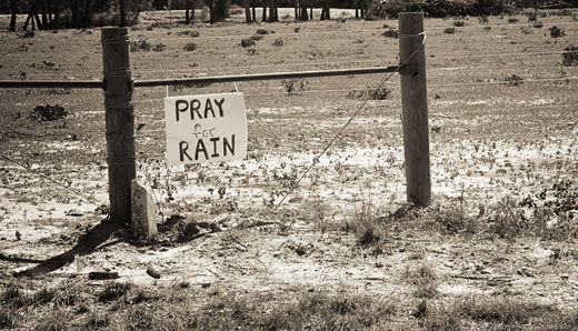 Photo: A central Texas rancher put this sign on his fence to encourage everyone driving by on TX 290 to do whatever they can to bring the parched land some relief. Jack Newton CC 2.0