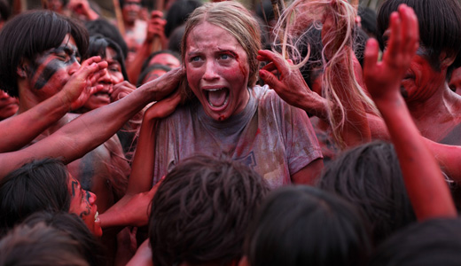 At the end of this movie experience, nobility passes to a young white woman, who stops the slaughter of the Natives with a cell phone camera, photographing the carnage, and later expounds about how well she was treated by the Indigenous hosts who devoured her fellow activists.