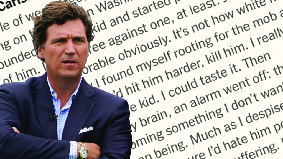 Tucker Carlson defines the same euphoria more prosaically but with appalling candor: “Suddenly I found myself rooting for the mob against the man, hoping they’d hit him harder, kill him. I really wanted them to hurt the kid. I could taste it.” Yes, taste it.