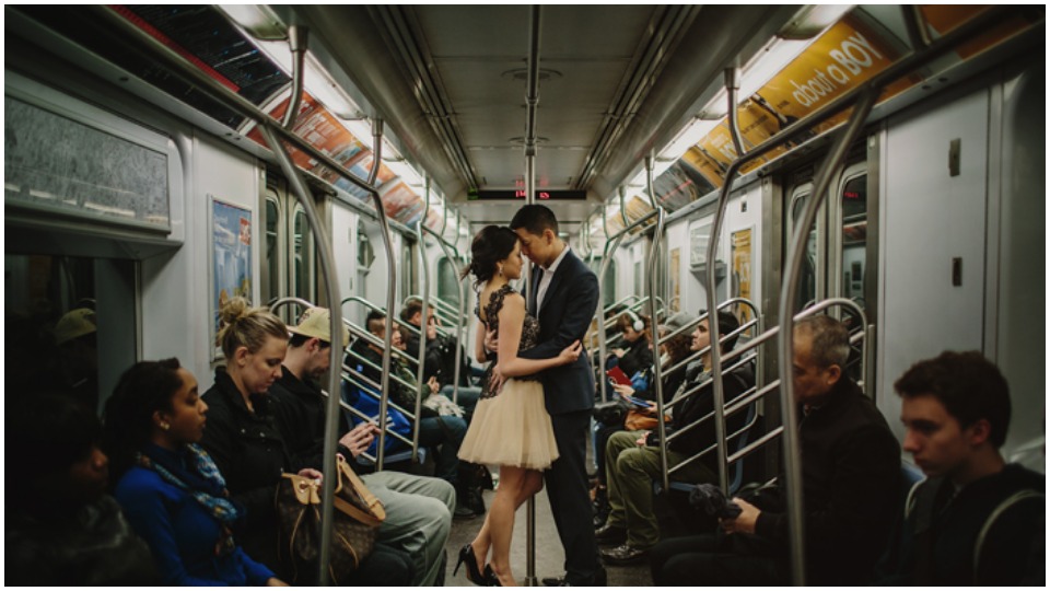 The separation, however, lasted only to Utica Avenue, where they transferred for the Lexington Avenue Subway. This time, they vowed, there would be no separation. With the bride holding grimly to his waist, the groom, who stands five, ten inches, and weighs about 182 pounds, charged through the crowd. There was no seat for the non-royal couple. Nevertheless, the 20-minute ride to Brooklyn Bridge held its recompense. The couple stood close together, swaying in rhythm with the train, with the bride’s veil occasionally tickling the groom’s nose.