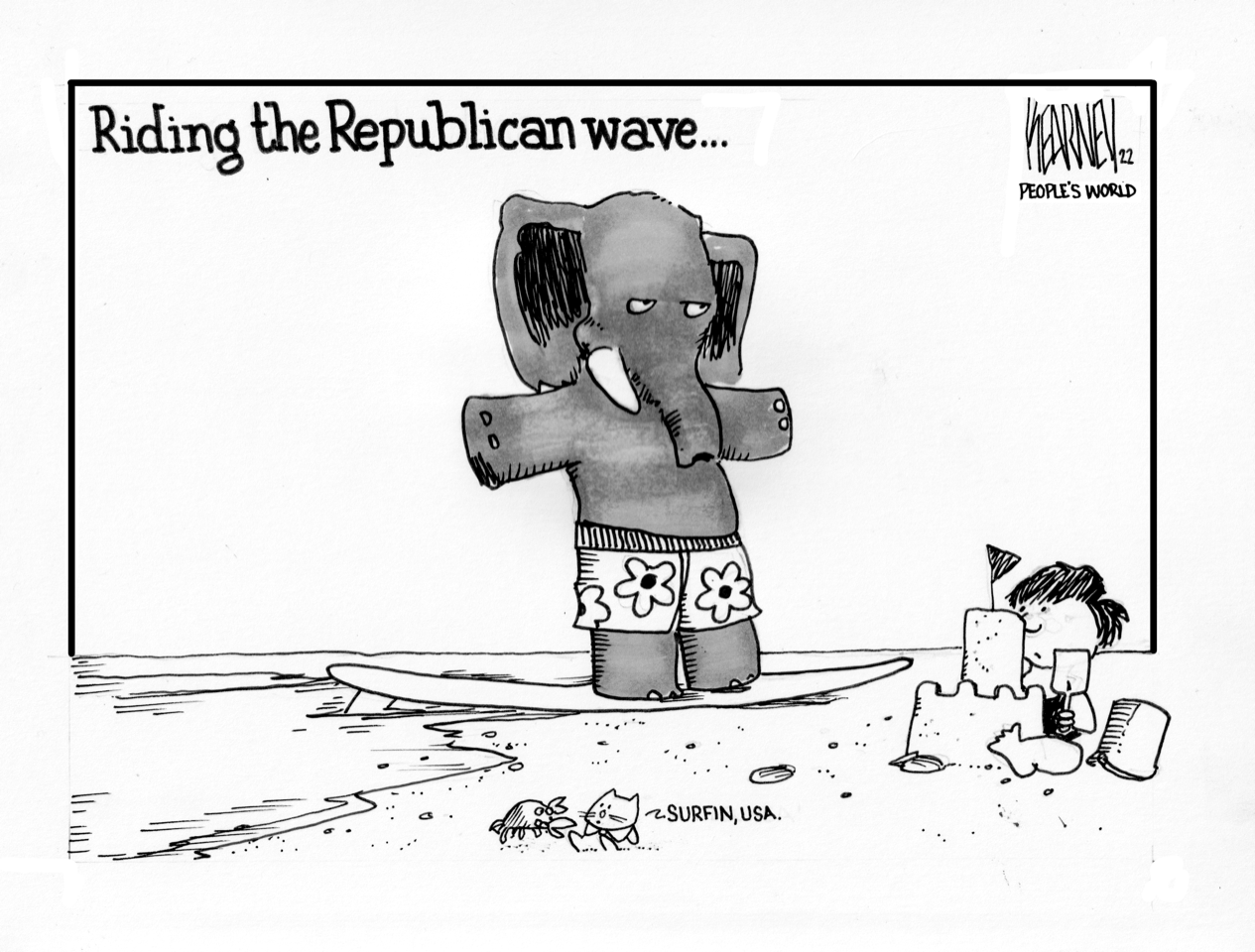 Greg Kearney has worked as an editorial cartoonist for over 40 years. He calls himself “a traditional labor Democrat,” and his cartoons have appeared in publications as diverse as the Journal of the Woman's Christian Temperance Union to People's World. “You may not always agree with my views but that is the whole point of editorial cartooning.” Kearney is a member of the Association of American Editorial Cartoonists.