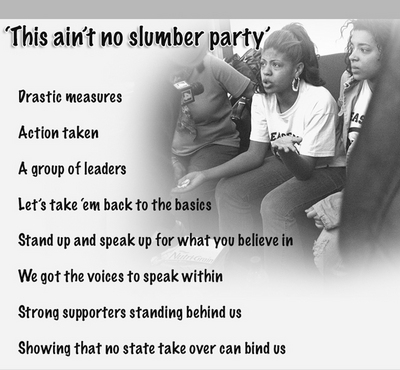 This poem was written during a five-day sit-in of high school students at St. Louis Mayor Francis Slay’s office after the Missouri Board of Education voted 5-1 to strip accreditation from the 32,000-student St. Louis City Public Schools on March 22.