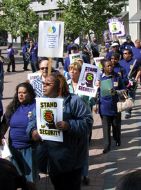 Private security officers and their supporters marched May 24 through downtown Oakland, Calif., past the high-rise commercial office buildings they work to protect, to demand decent wages, affordable family health care and respect.