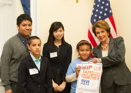 Photo: Congresswoman Pelosi and children from We Belong Together, including San Franciscan Nashali de la Rosa, discussing the urgency of comprehensive immigration reform. CC BY 2.0.