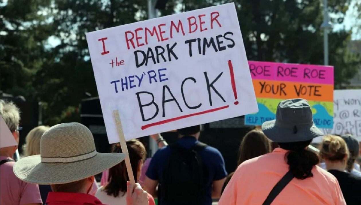 “Roe, Roe. Roe your vote!” was one of the milder signs at one of the largest of the rallies, in D.C., referring to the 1973 Roe v Wade Supreme Court ruling that abortion is a constitutional right—a right the current court’s Republican five-Justice majority revoked at the end of June.