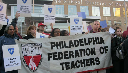 Philadelphia Federation of Teachers (PFT) President Jerry Jordan told the crowd that “this rally is about more than school closings. The closings are symbolic of an ineffective approach to education that we are not going to put up with. Budget cuts and school closings do not make students achieve any better. Schools will improve when parents, students and teachers come together to decide what is best for them.” Local NAACP President Jerome Mondesire urged the students present to go back their schools and “organize, organize, organize!”