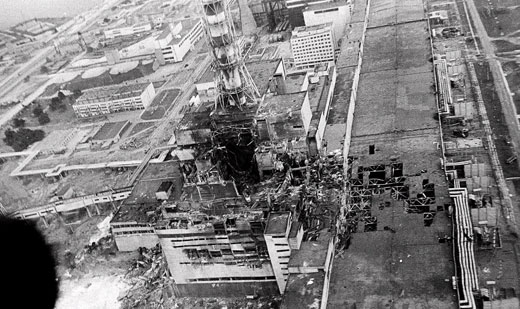 Photo: The Chernobyl plant’s nuclear reactor, destroyed after a series of explosions which occurred on Apr. 26. The disaster was officially announced publically on Apr. 28. AP