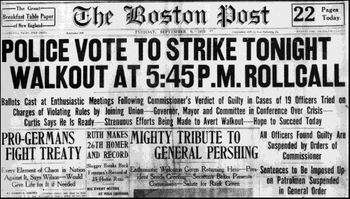 In retaliation to the suspension of the nineteen union officers and the Police Commissioner’s refusal to allow them to join the AFL, the Boston Police went on strike.