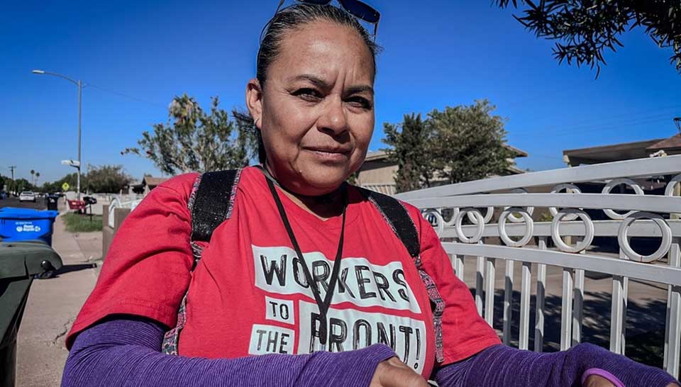 “¡Hola, servicio de limpieza!”, gritó, y se echó a reír al darse cuenta de su error. La mujer de 57 años es miembro de UNITE HERE, el sindicato de la hostelería, y se había ausentado de su trabajo en un hotel Hilton cercano para ir de puerta en puerta y mantener a Arizona en el poder. “Me gusta dar un paso atrás y esperar, para que piensen que me he ido”, dijo. “Entonces abren la puerta y aquí estoy”. (Revelación: el sindicato es un apoyo financiero de Capital & Main).