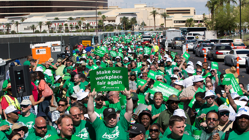 After two years of struggle, hospitality workers at the Trump hotel in Las Vegas have won a four year contract that yields significant wage hikes, improved working conditions, family healthcare benefits, pensions, and – most important – job security.