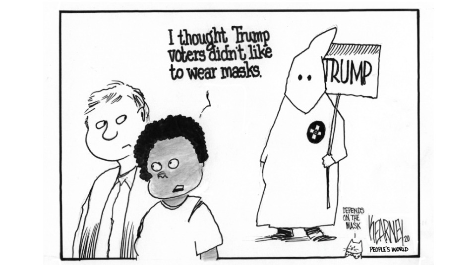 Greg Kearney has worked as an editorial cartoonist for over 40 years. He calls himself  “a traditional labor Democrat,” and his cartoons have appeared in publications as diverse as the Journal of the Woman's Christian Temperance Union to People's World. “You may not always agree with my views but that is the whole point of editorial cartooning.” Kearney is a member of the Association of American Editorial Cartoonists.