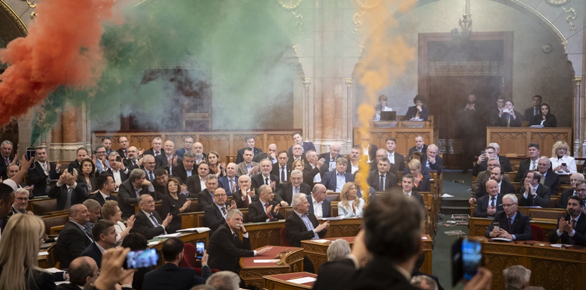 The law, supported by Orban’s Fidesz party and their minority coalition partner the Christian Democrats, was pushed through parliament in an accelerated procedure after being submitted on Monday. Opposing legislators led a vivid protest in the legislature involving rainbow-colored smoke bombs.