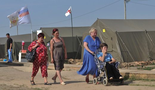Photo: At a camp for refugees from Ukraine’s east, on the border with Ukraine near the Russian town of Donetsk in Rostov-on-Don region, July 13. A half million refugees, fearing for the safety and lives of their families, have already crossed into Russia. Sergei Pivovarov/AP