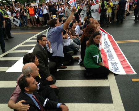 The sit-in was held to send the strongest message possible to House GOP leaders that the fight for immigrant families has been escalated and will continue through the August recess and into the fall until the House produces a comprehensive bill that creates a path to citizenship for some 11 million undocumented immigrants.