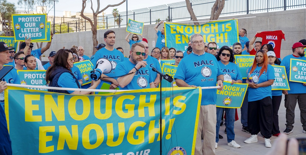 “We are here to send a very clear message: Enough is enough is enough,” new NALC President Brian Renfroe said in days before another “Enough is enough!” rally on April 30 in Baltimore. It featured local NALC and other union leaders and Rep. Kweisi Mfume, D-Md., one of the legislation’s 58 co-sponsors.